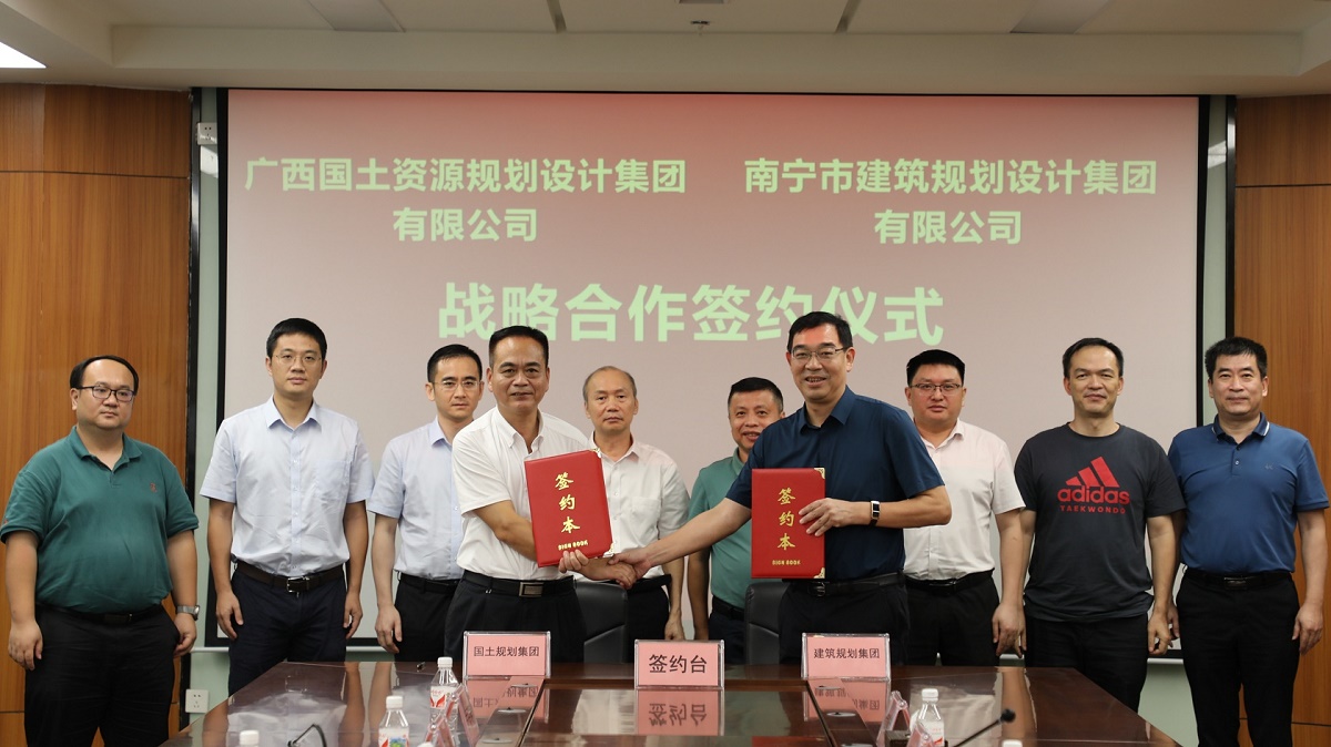 在與會人員的共同見證下,集團總經理、副董事長馮江泉和廣西國土資源規劃設計集團總經理、黨委副書記、副董事長魏玉平分別代表雙方簽訂戰略合作協議。